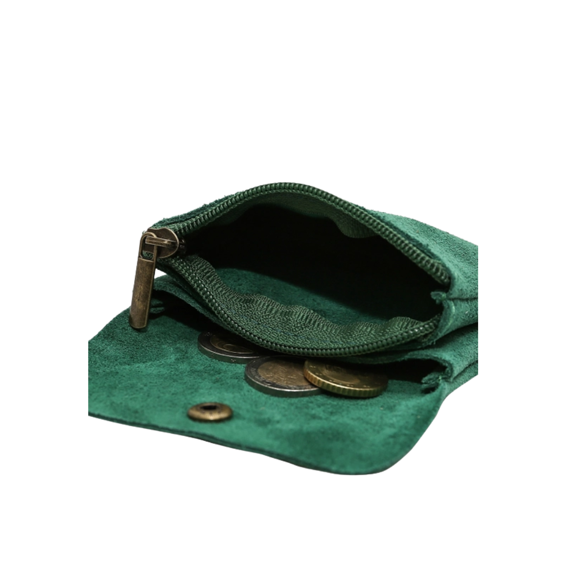 Portefeuille met drukknoopsluiting van suède rundleer.