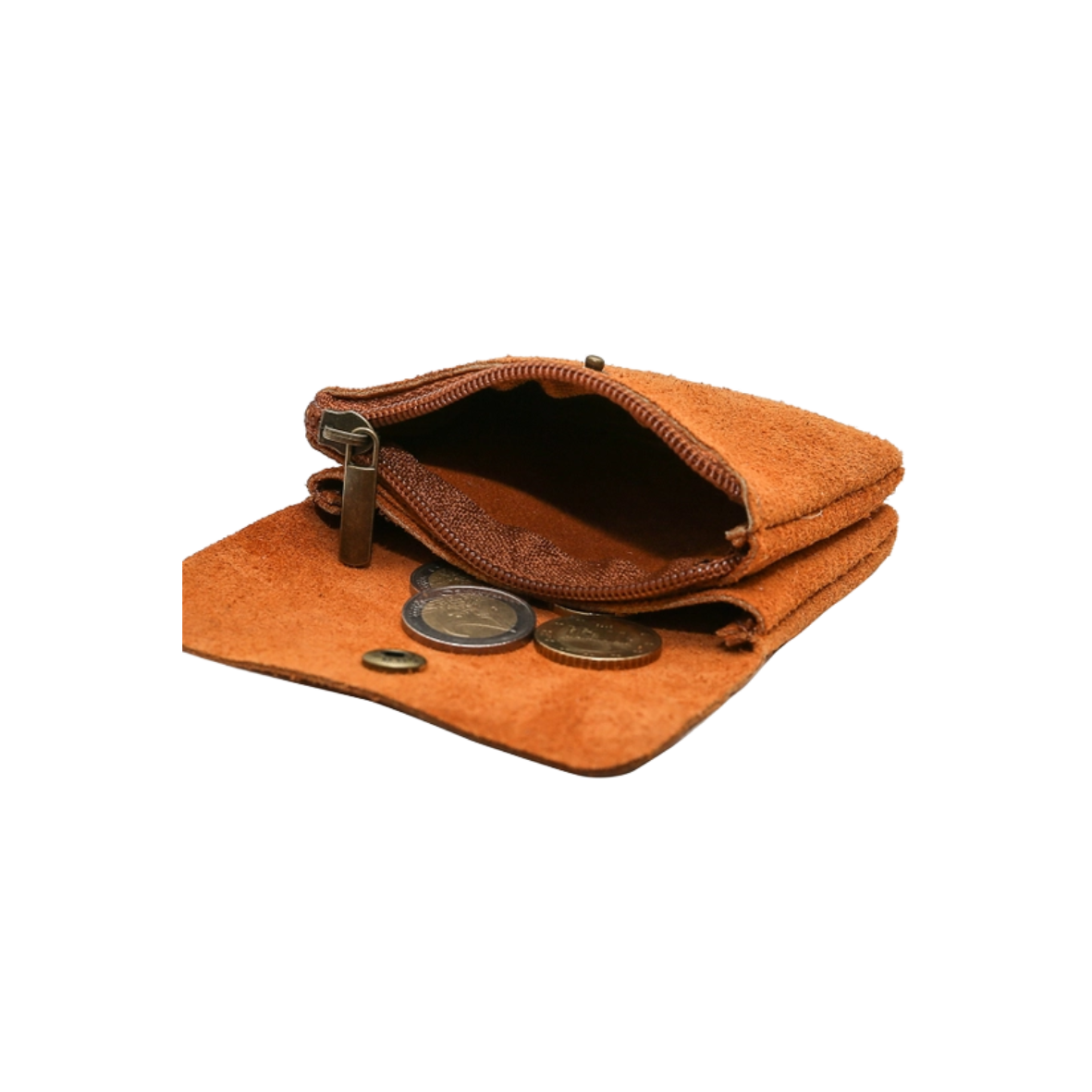 Portefeuille met drukknoopsluiting van suède rundleer.