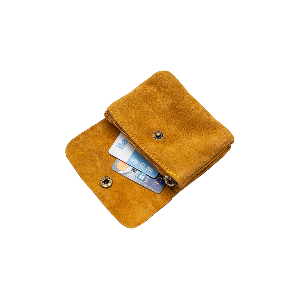 Portefeuille met drukknoopsluiting van suède rundleer.