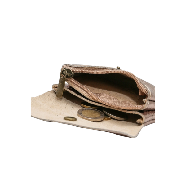 Portefeuille met drukknoopsluiting van rundsleer.